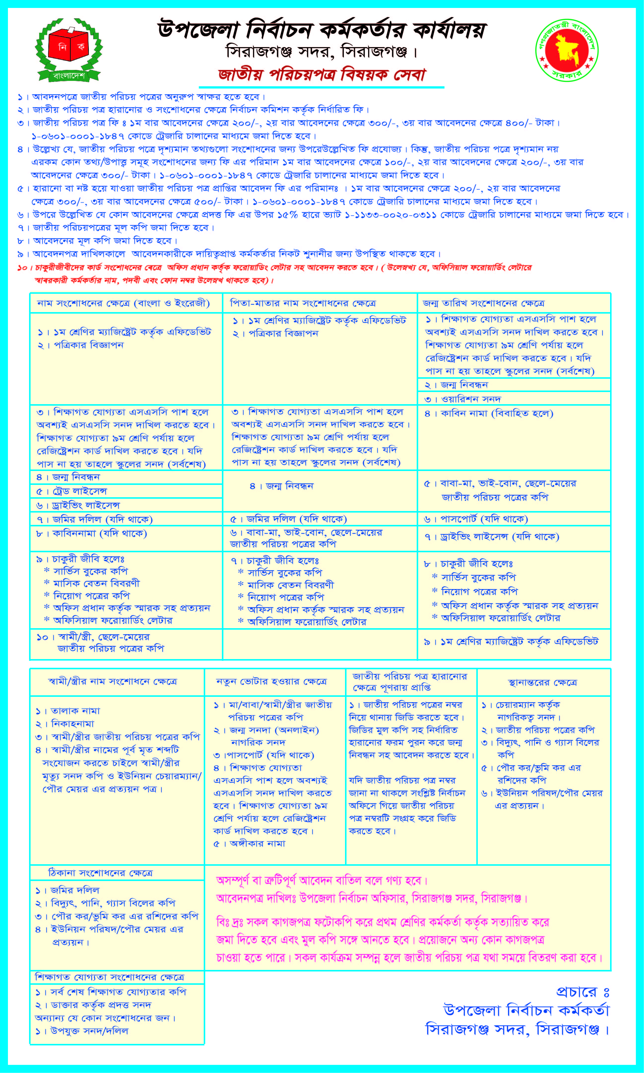সিরাজগঞ্জ সদর উপজেলার ১০টি ইউনিয়ন ও ১টি পৌরসভার মোট ভোটার সংখ্যা